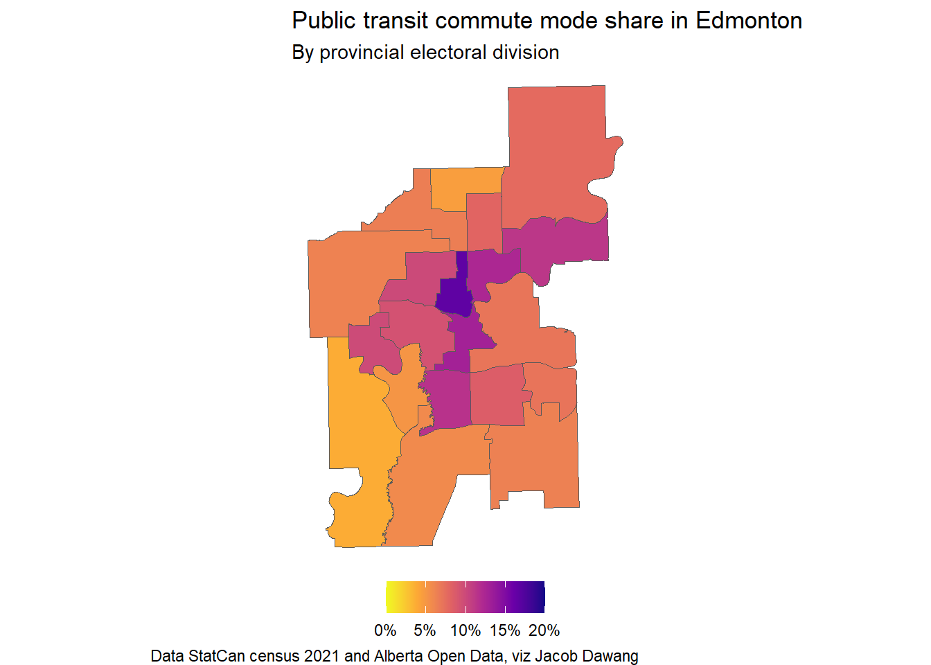 Quick maps of mode share by provincial electoral division in Edmonton.