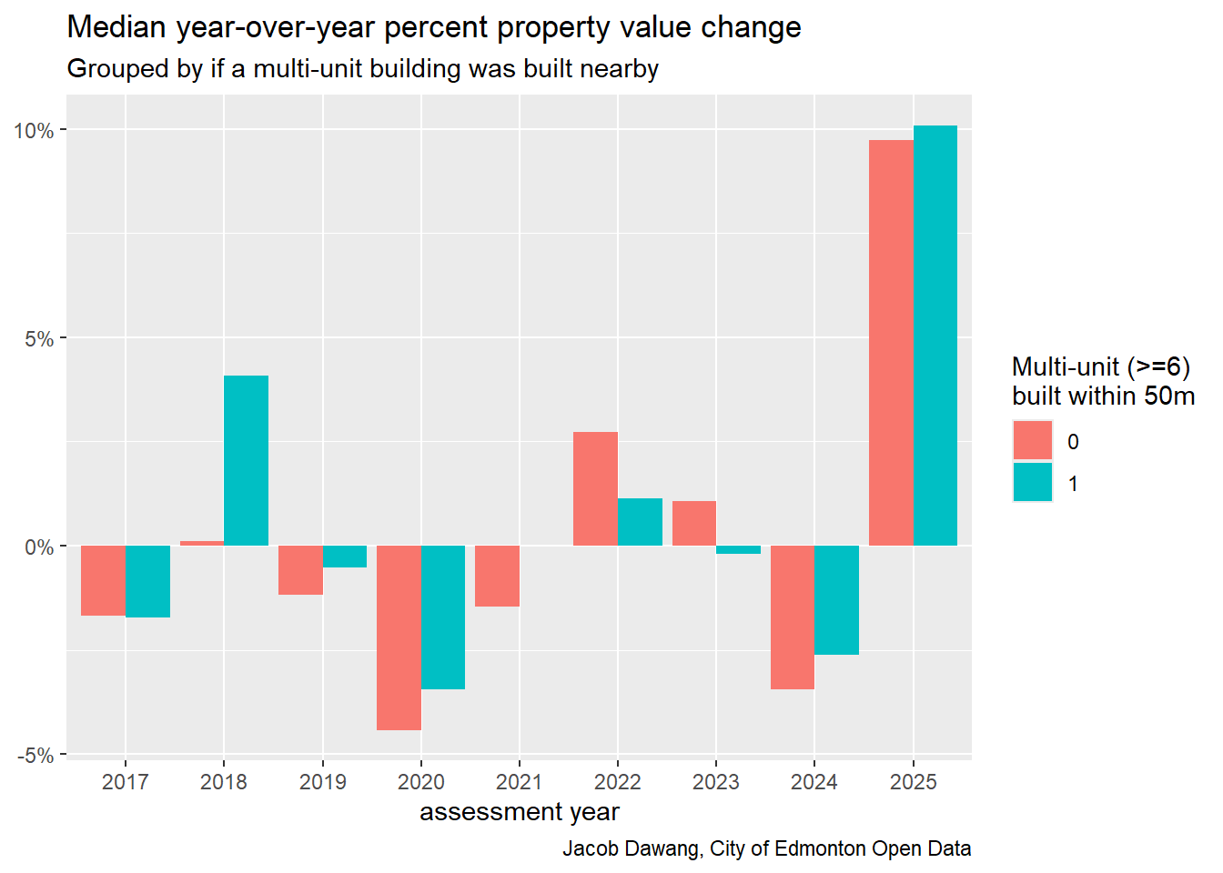 A few graphs and tables for preliminary work on infill construction’s effects on property values.
