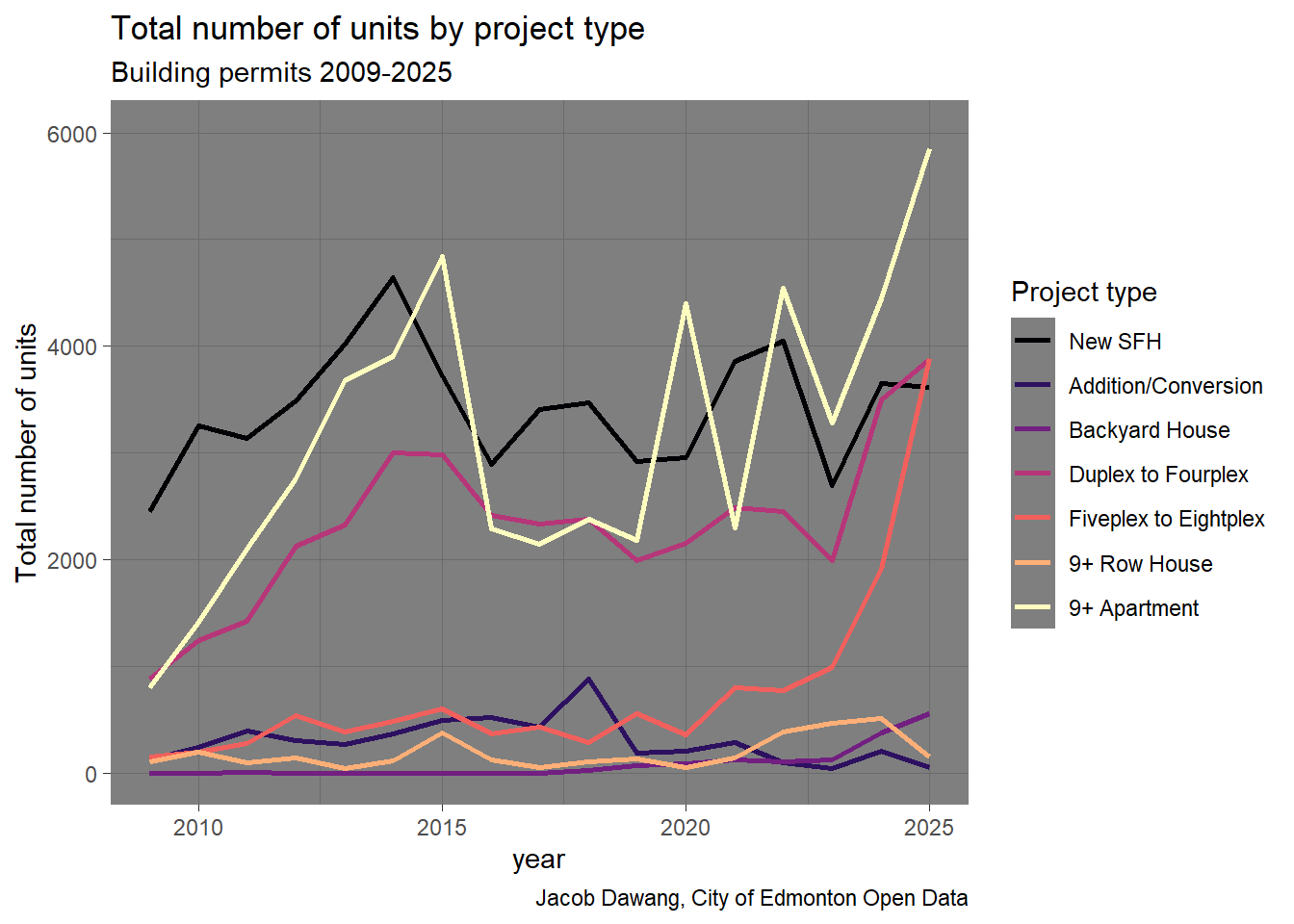 Edmonton’s housing policy continued its march forward this past year with the new zoning by-law renewal coming into effect and district plans in force. Let’s take a look at where and what type of homes are being built in this new policy regime.